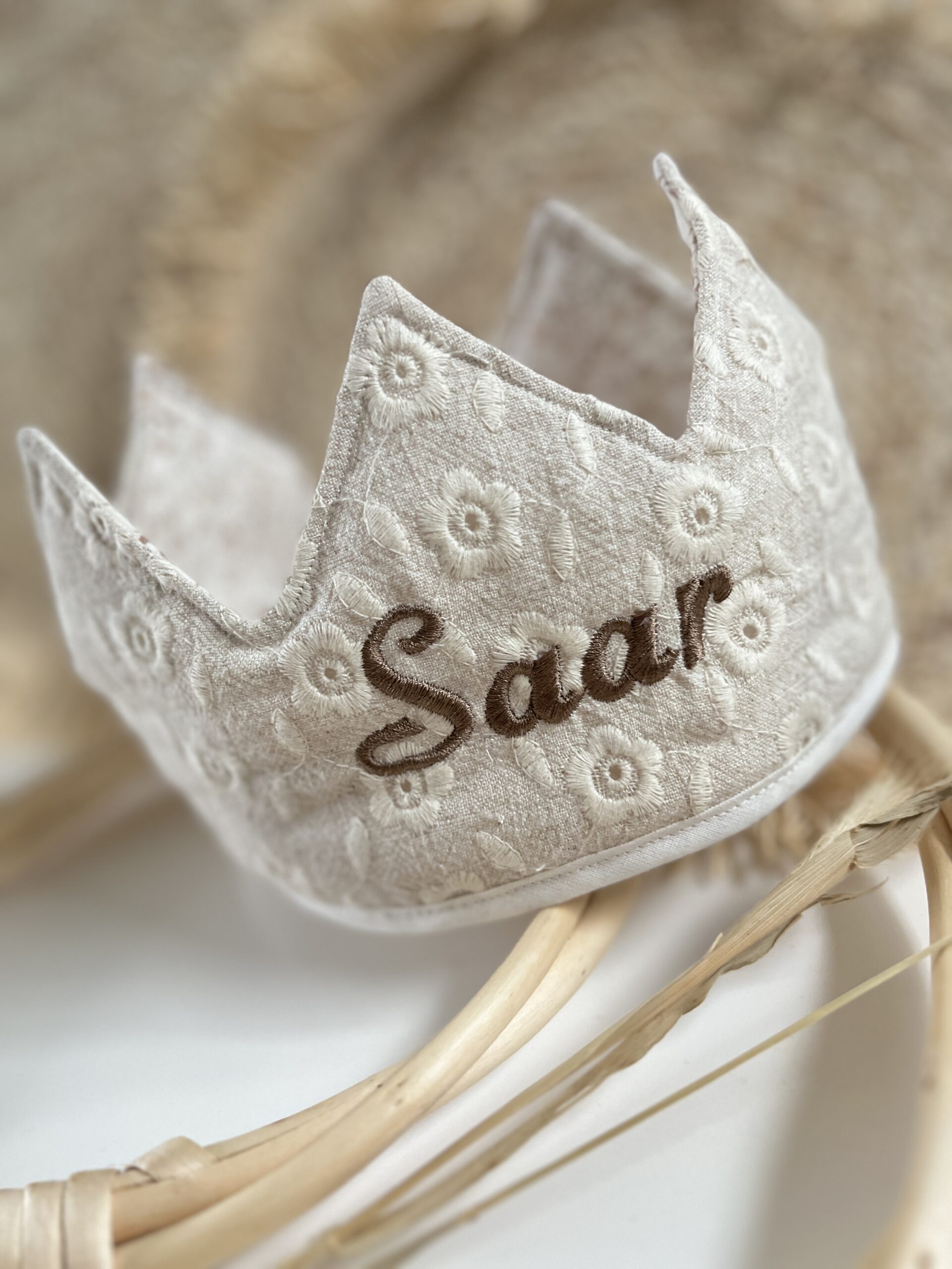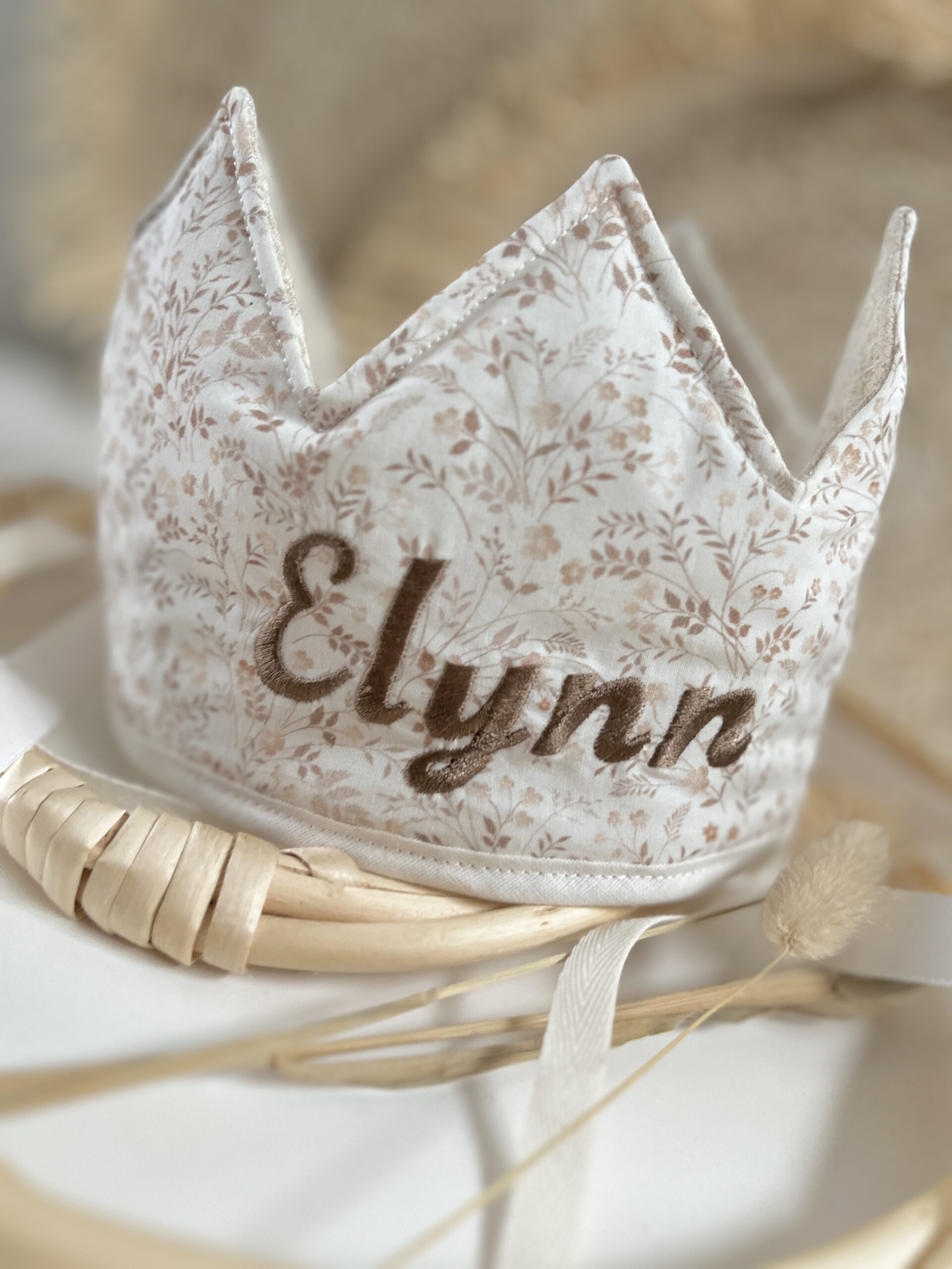Dit kroontje wordt gepersonaliseerd met de naam van de jarige of tekst naar keuze. De letters kunnen in een sierlijk lettertype of in blokletters.